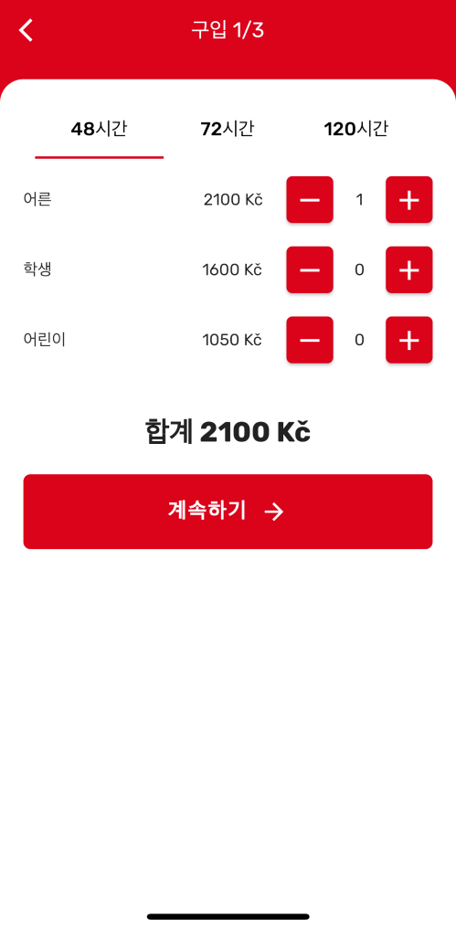 프라하를 여행하는데 필수앱이라 매일 사용한 앱이기도 하며 프라하 대중교통을 횟수 제한없이 정해진 시간 안에 계속 이용할 수 있습니다.
