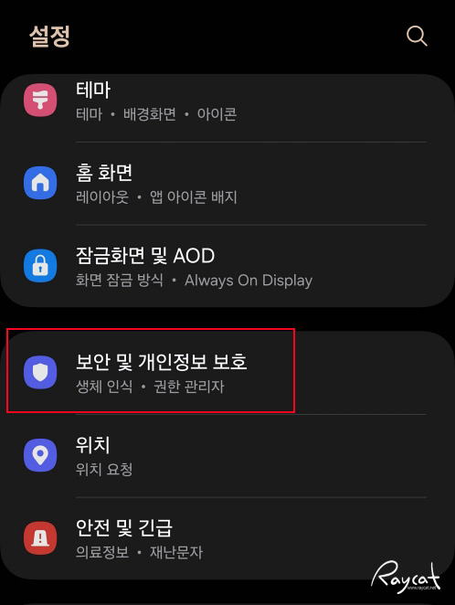 기기위치 확인을 위해서 먼저 설정에서 '보안 및 개인정보 보호'를 탭 합니다.