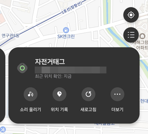 지도에 위치가 꽤 정확하게 나오며 스마트태그가 있는 위치의 주소도 나오기 때문에 분실한 물건의 위치를 정말 쉽게 찾을 수 있습니다.