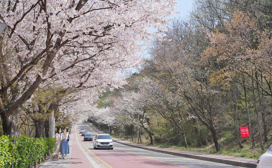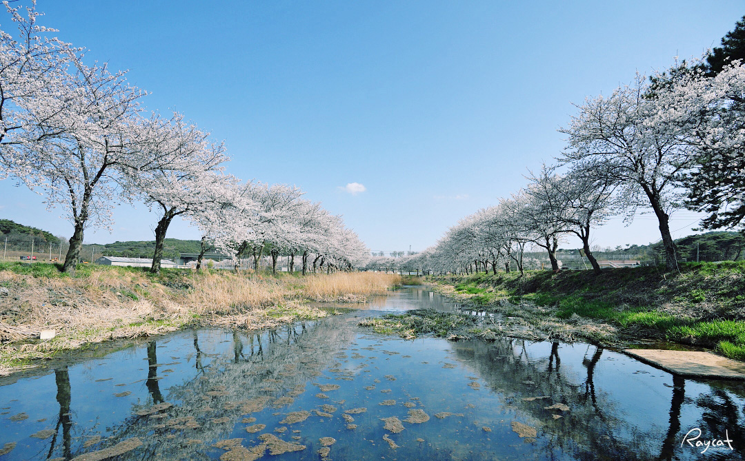 위 사진은 대칭 구도법으로 물 중앙에서 양쪽의 벚나무가 대칭으로 늘어선 모습을 촬영한 것으로 물이 흐려서 아쉽게도 반영이 제대로 담기지 않았습니다.