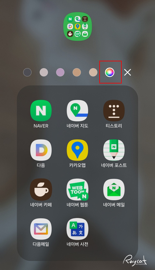 홈화면에서 폴더를 선택하고 폴더 상단의 색상팔레트를 선택합니다.