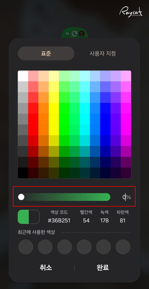색상팔레트에서 0%로 만들고 홈화면을 보면 폴더가 투명화되어 기존 폴더에 컬러를 적용했던 것과 비교해 보면 홈화면의 배경이 좀 더 깔끔하게 보이게 됩니다.