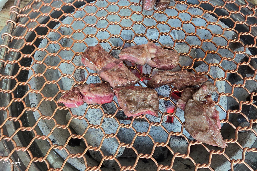 갈빗살부터 시작해서 등심순으로 취향에 따라 순서대로 구워 먹으면 되는데 살짝 덜 익어도 소고기는 맛있습니다.