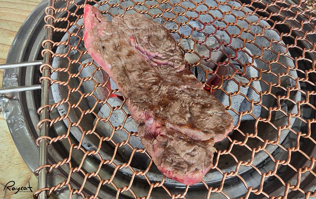 갈빗살부터 시작해서 등심순으로 취향에 따라 순서대로 구워 먹으면 되는데 살짝 덜 익어도 소고기는 맛있습니다.