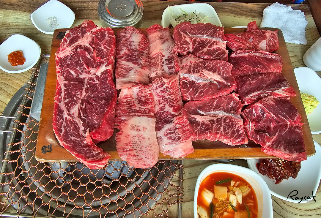 한우만 취급하는 식당이라 고기 가격이 저렴하진 않지만 그만큼 맛은 괜찮은 곳으로 단품으로 주문하는 것보다 한우 모듬으로 주문하면 좀 더 다양한 부위를 먹을 수 있습니다.
