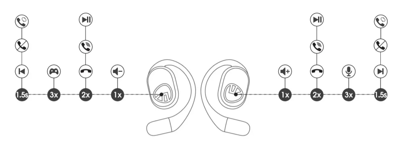 고프리2의 측면에 터치 패널이 있으며 조작법은 간단한데 사운드피츠 고프리2 터치패드 조작은 아래와 같습니다.
