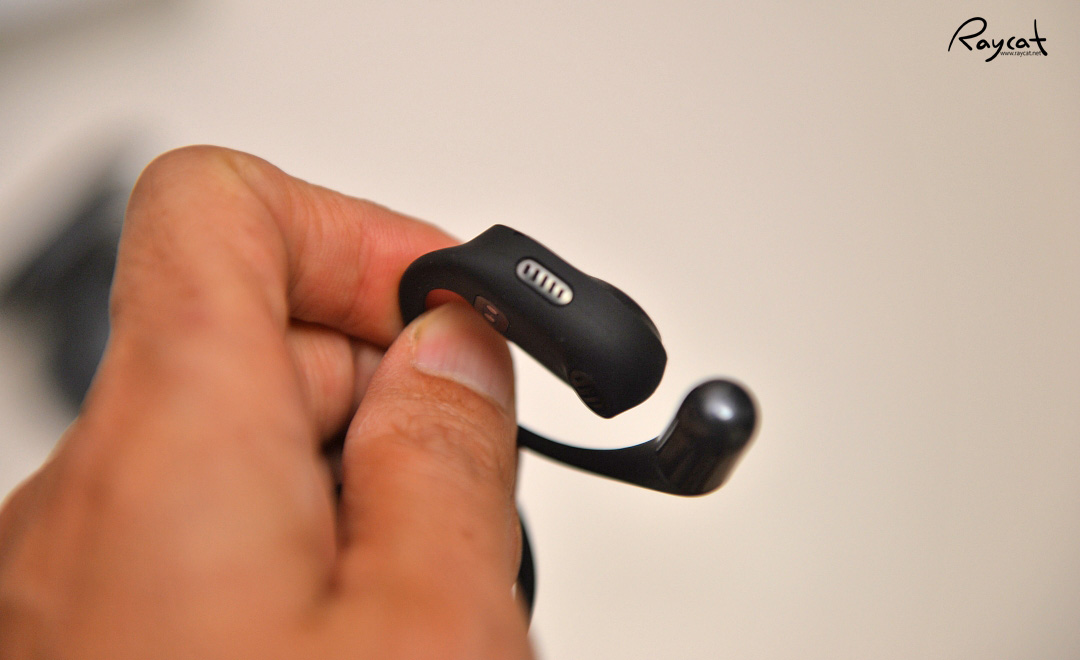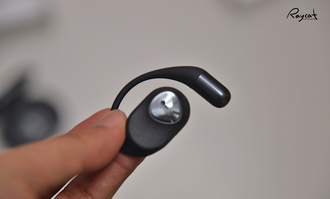 오픈형 이어폰이라 귀에 고리처럼 걸어서 밀착하며 귀에 밀착하는 이어폰의 아래쪽에 마이크가 있습니다.