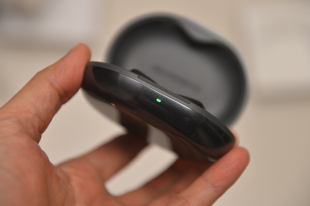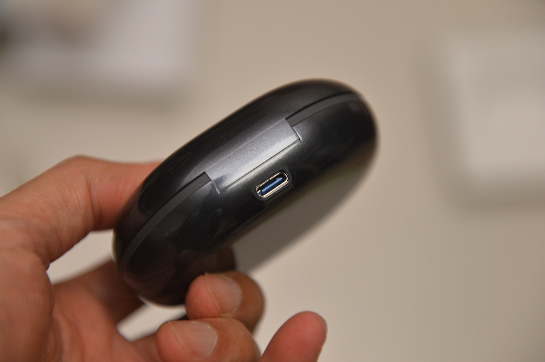 케이스에는 충전 상태를 보여주는 LED가 있으며 usb-c 케이블로 충전하며 충전 케이스가 매끄러운 조약돌 같은 느낌을 줍니다.