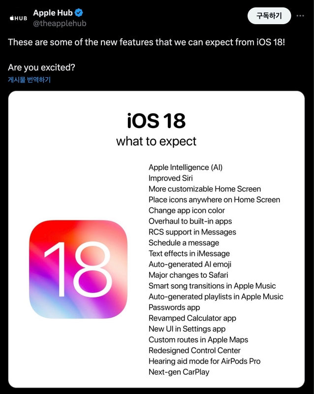 주로 애플과 관련된 소식을 전하는 애플허브에서 이번 WWDC에 공개될 iOS 18의 주요 변경 사항을 유출했습니다.