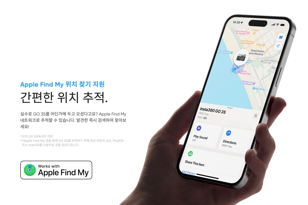 또 카메라 자체적으로 애플의 '나의 찾기' 네트워크를 지원해서 분실 시에는 주변 아이폰들의 위치정보를 통해 위치를 추적할 수 있습니다.