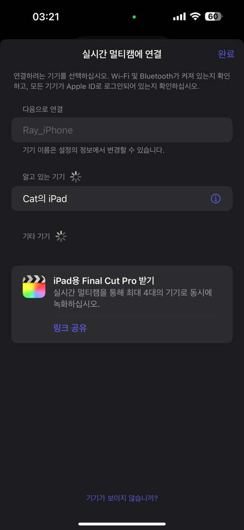 또 아이패드의 파이널 컷 프로와 연동해 실시간으로 편집도 가능합니다.