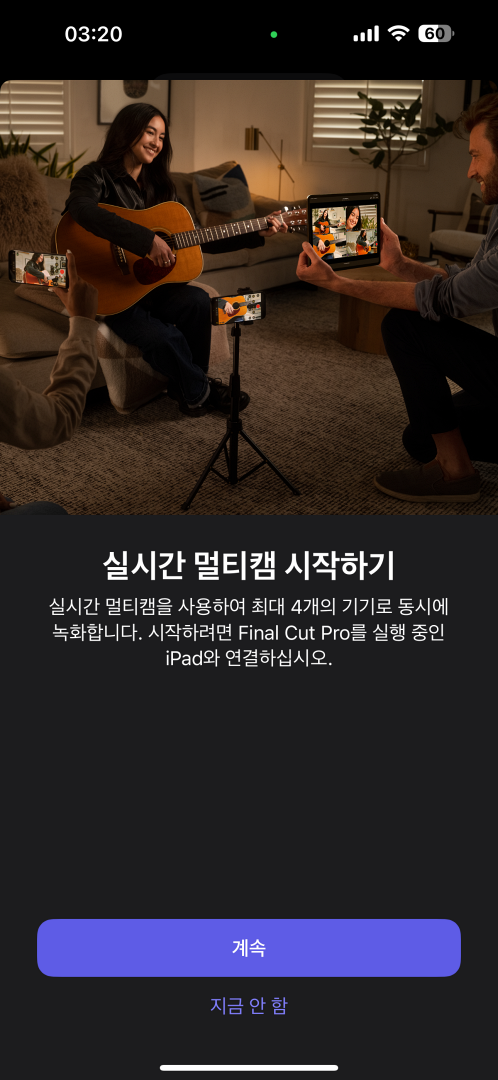 그리고 조금 특이한 기능은 실시간 멀티캠 기능으로 최대 4대의 기기로 동시에 녹화가 가능하며 사용자는 아이패드용 파이널 컷 프로2의 실시간 멀티캠으로 최대 4대의 카메라를 동시에 연출 및 제어할 수 있습니다.