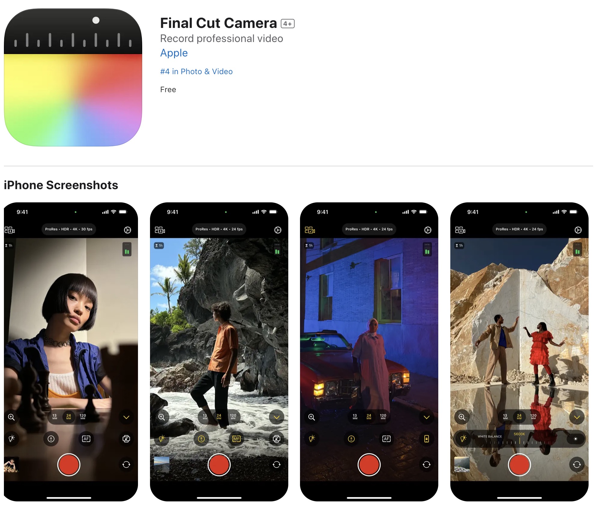 맥에서 영상 편집용으로 유명한 파이널컷이 생각나는 앱인데 아이폰뿐 아니라 아이패드용도 있으며 파이널 컷 카메라는 영상 촬영 시 상세한 수동 설정을 지원합니다.