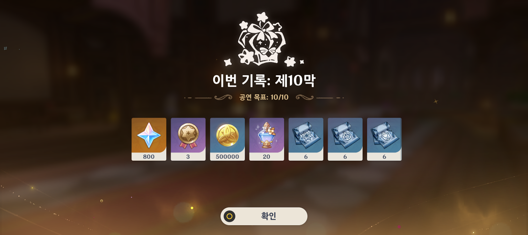 참고로 별을 다 획득하지 못해도 10막까지 클리어하면 보상은 모두 받습니다.