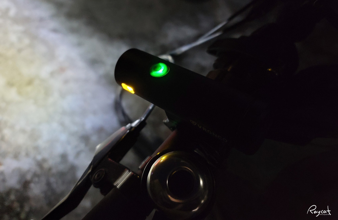 전조등의 배터리가 30% 이하로 떨어지면 전원 스위치의 LED가 붉은색으로 바뀌며 30% 이하로 떨어지면 전조등 밝기도 자동으로 줄어듭니다.