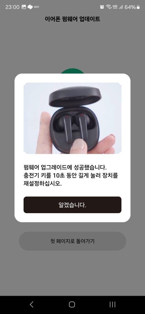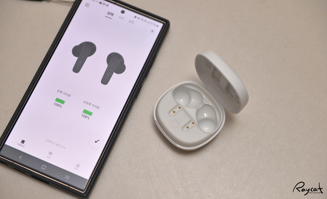 앱과 이어폰이 제대로 연결 안 되면 케이스의 리셋 버튼을 10초간 눌러서 초기화를 해보시길 권합니다.